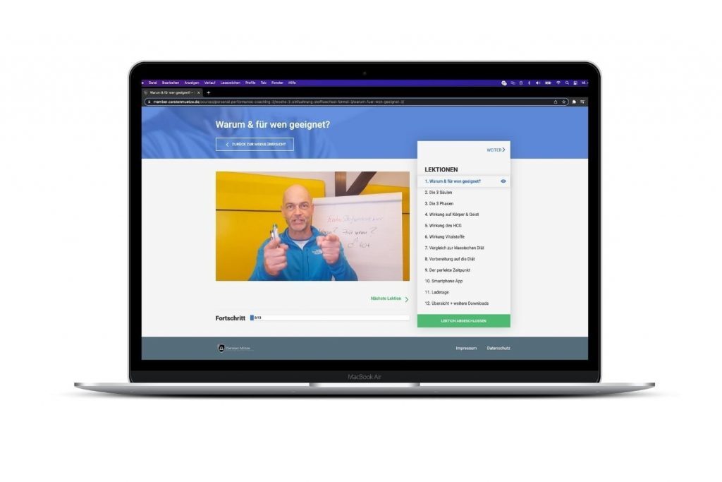 Die komplette Anleitung, Umsetzung aller Details Schritt für Schritt auf Video. Lebensmittel-Checkliste, Tabellen etc. zusätzlich zum Download.